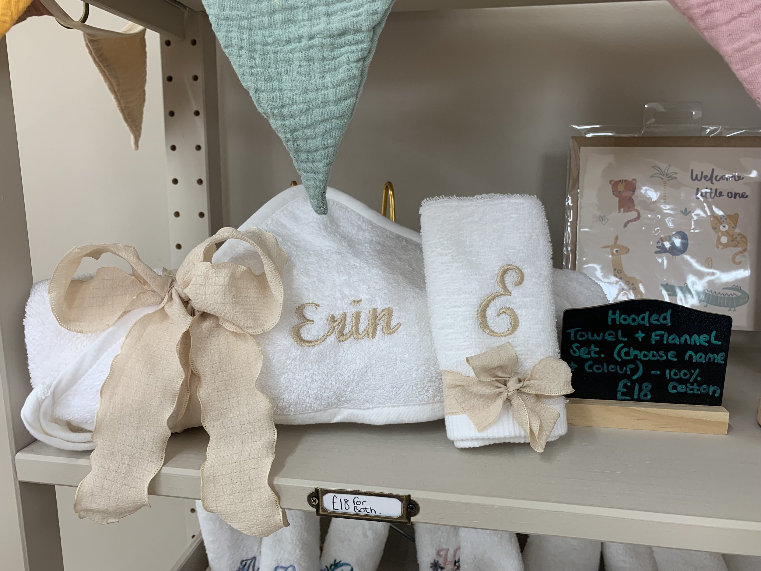 Our collection includes soft, cosy hooded towels made from 100% cotton, perfect for wrapping little ones after bath time, paired with matching wash cloths for a coordinated look. We also offer a selection of blankets designed to be treasured, along with bibs, gentle comforters, and 16" teddy bear T-shirts.
